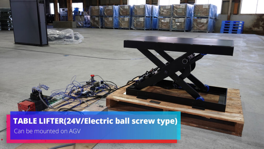 何が凄いって、DCモーター/24Vを採用しているためAGVに搭載することが可能な電動テーブルリフターなんです。更に全長680mm、幅450mm、高153mmとコンパクトなサイズで500kgをリフトアップさせることが可能なんです!
